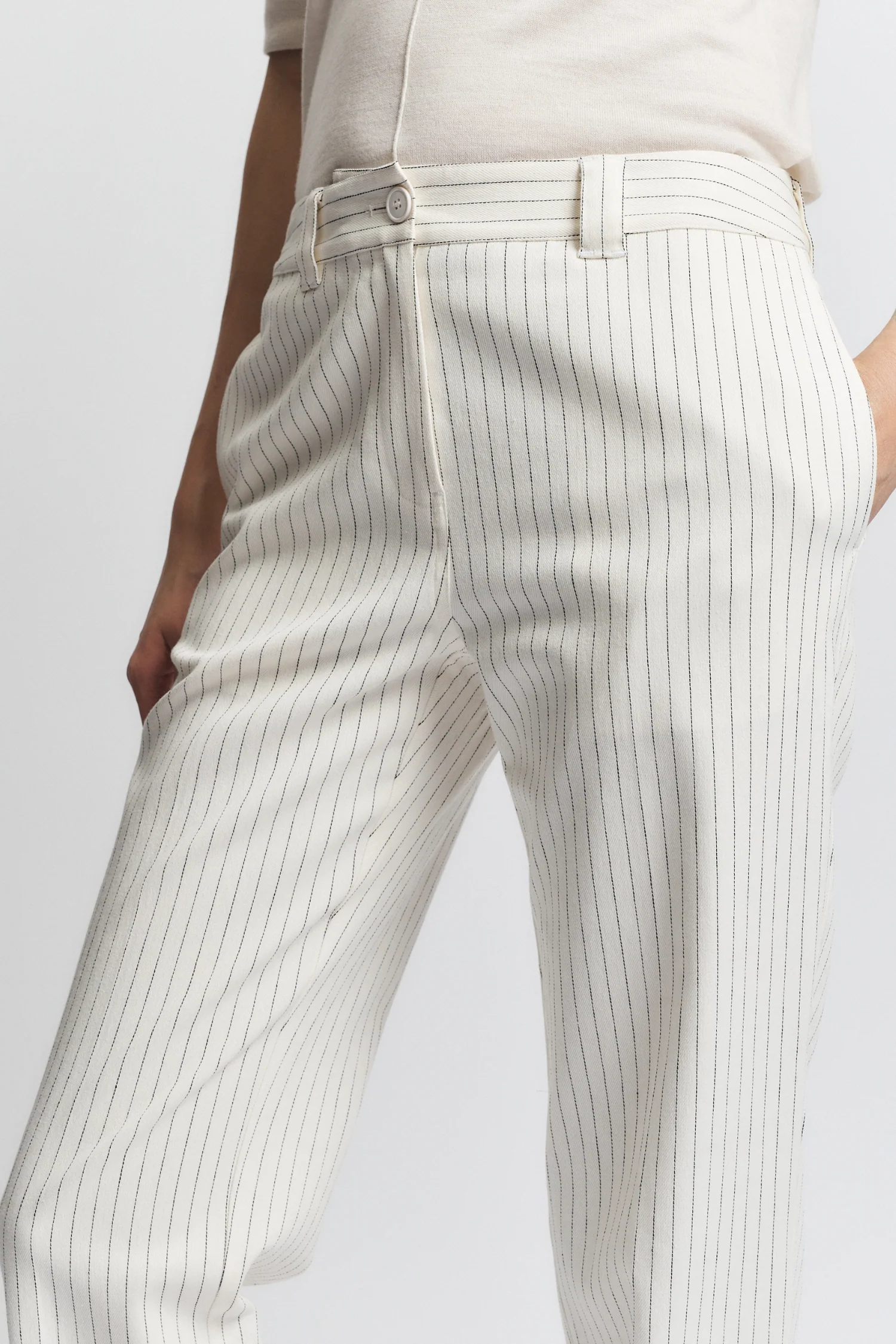 Noelle Slim Straight Trouser, Ivory Pinstripe