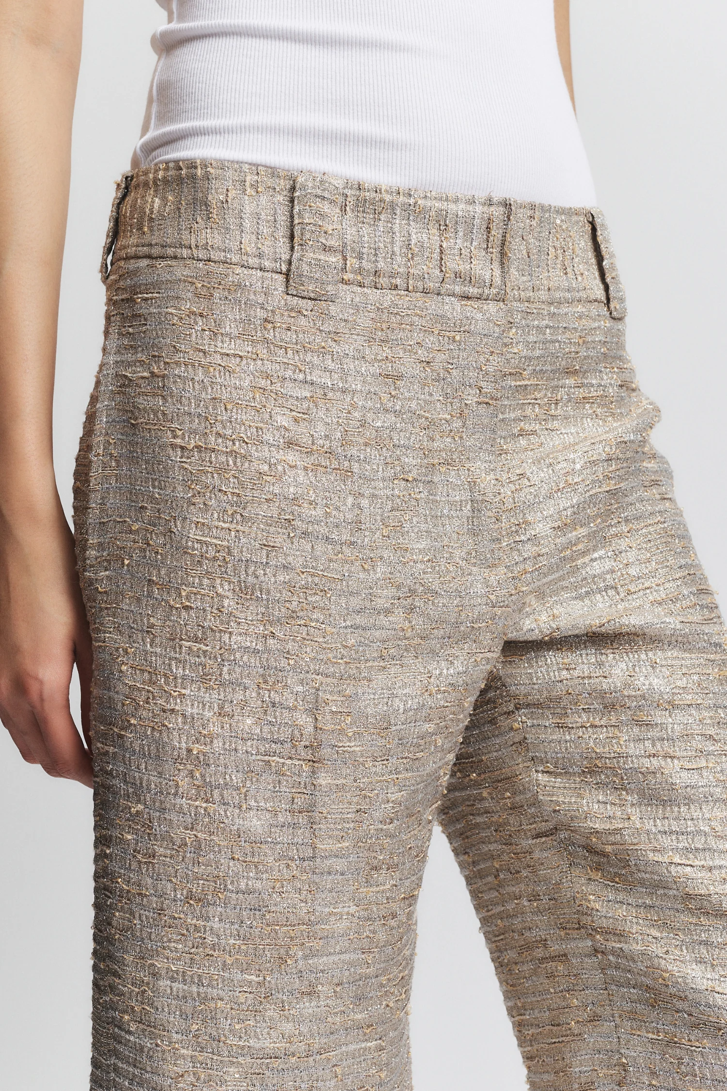 Experience the perfect balance of surf culture and elegance with the Serena Longline Short in Gold. The soft jacquard material and wide belt loops provide comfort and style, while the internal clasp and welt pockets elevate the look. Perfect for a sophisticated evening out.